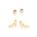 Kit brinco solitário e sapato cinderela banhado a ouro 18k com zircônias