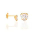 Brinco infantil solitário coração banhado a ouro 18k com zircônias