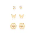 Kit brinco borboleta, flor e solitário banhado a ouro 18k com zircônias