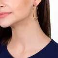 Este brinco em formato de argola, banhado a ouro 18k, oferece um acabamento brilhante e duradouro, realçando seu estilo com delicadeza e classe. Ideal para ocasiões formais ou para compor looks do dia a dia com um toque de requinte.