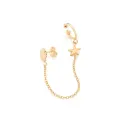 Brinco piercing de pressão com concha e estrela do mar banhado a ouro 18k