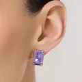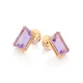Brinco solitário retangular banhado a ouro 18k com cristais