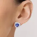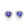 Brinco botão coração de prata maciça 925 com zircônias